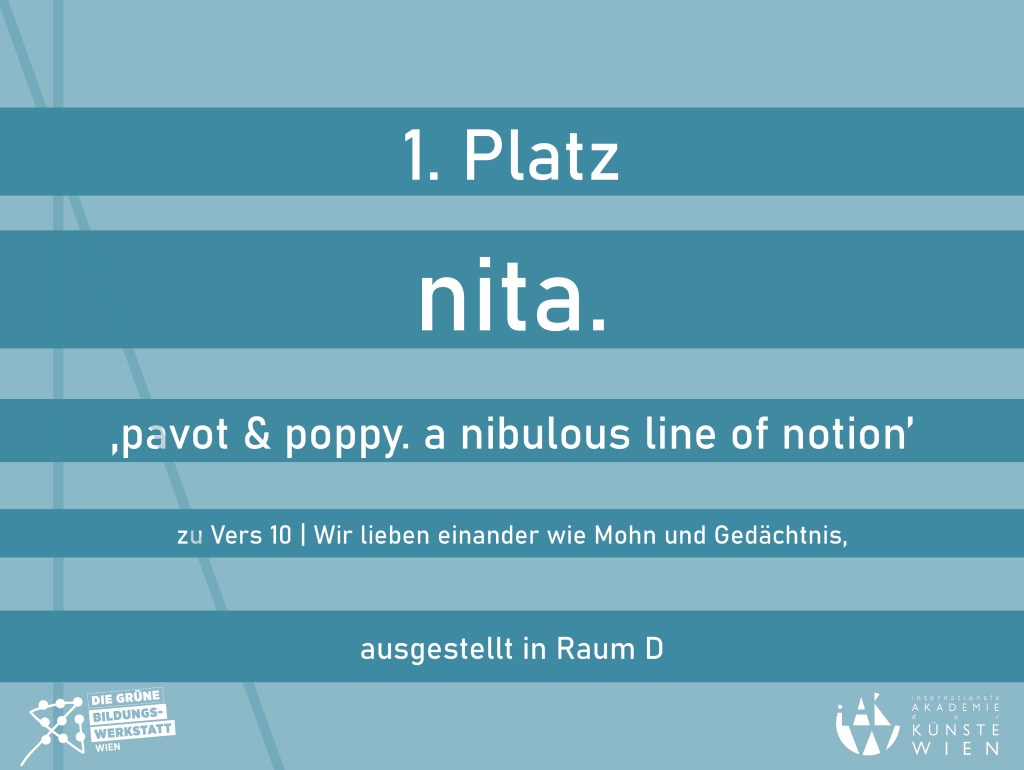 Anhand der Kriterien Idee, künstlerische Durchführung, Bezug zum ausgewählten Vers aus Celans Gedicht Corona, Projektbeschreibung und „Genius“ hat die Jury aus 52 Einsendungen vier Arbeiten für die mit einem Preisgeld dotierten ersten vier Platzierungen ausgewählt. Die Jury hält fest, dass die künstlerische Qualität aller Arbeiten im oberen Bewertungssegment sehr hoch war, und möchte den Besucher_innen der virtuellen Ausstellung daher eine eingehende Auseinandersetzung mit allen hier ausgestellten Kunstwerke sehr ans Herz legen.